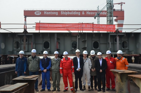 2017年3月28日,我司為德國船東建造的74000噸油輪(船體號:HT-OT74-007)舉行上臺儀式,該船入LR船級社。公司領導、船東、船級社代表參加該儀式。