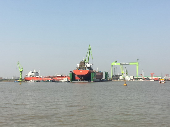 2017年3月29日,我司為船東中化船務(wù)建造的38000 DWT不銹鋼化學(xué)品船(船體號(hào):HT-CT38-006)順利下水,該船入LR 和CCS船級(jí)社。公司領(lǐng)導(dǎo)、船東、船檢代表參加該下水儀式。