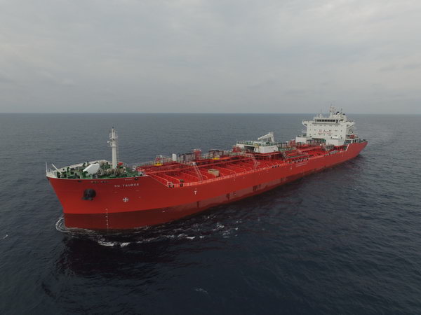 2017年10月12日,在我司碼頭隆重舉行了38K(船體號:HT-CT38-007)不銹鋼化學(xué)品船的命名&交船儀式,該船為中化船務(wù)有限責(zé)任公司建造,命名為“SC TAURUS”。公司領(lǐng)導(dǎo)、船東、船檢代表等參加了該儀式。儀式結(jié)束后,船東船檢代表等參觀了該船,并給予了很高的評價。