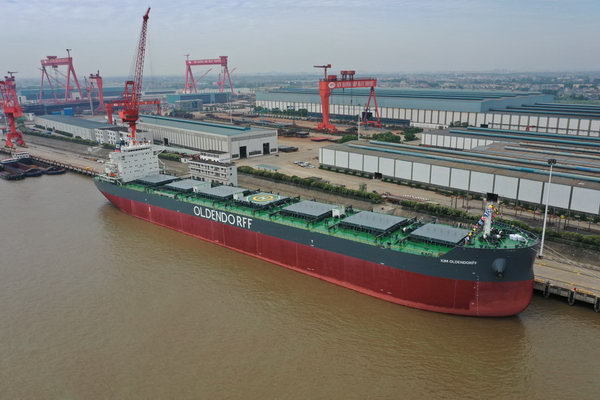 2019年5月29日,新韓通船舶重工為德國船東Oldendorff建造的82K散貨輪 “Kim Oldendorff”(船體號:HT82-202)成功舉行命名儀式, 并順利簽字交船。