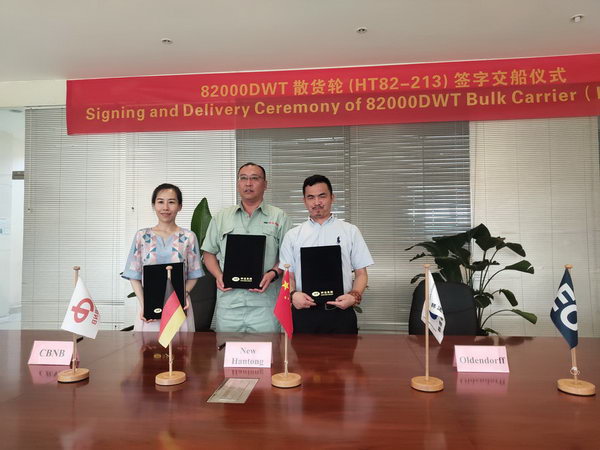 2019年7月18日,新韓通船舶重工為德國船東Oldendorff建造的82K散貨輪 “Klara Oldendorff”(船體號:HT82-213)成功簽字交船。
