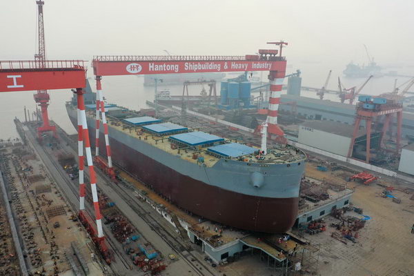 2020年1月12日,公司為日本Nisshin船東建造的82000噸散貨船(船體號:HT82-235)順利下水。該船入BV船級社。公司領導和船東、船檢代表參加了上臺儀式。