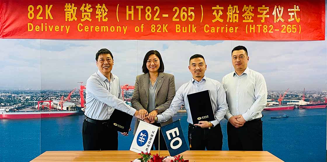 2023年10月20日,韓通為德國OLDENDORFF船東建造的82000噸散貨輪 “KLARISSA OLDENDORFF”(船體號:HT82-265)順利簽字交付,HT82-265是系列船中的第8艘,也是韓通交付給OLDENDORFF的第27艘,屬于目前航運市場主流的散貨船船型,入LR船級社。