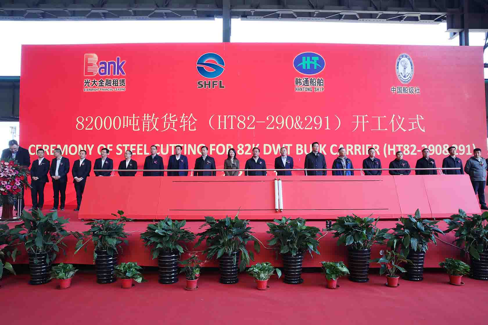 2023年11月17日上午,韓通為山東華宸融資租賃股份有限公司和光大金融租賃股份有限公司聯(lián)合建造的12條散貨輪中首兩艘船(船體號:HT82-290&291)順利開工。