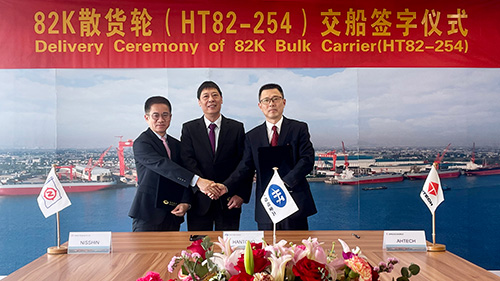 2024年4月10日,韓通為日本Nisshin船東建造的新批次第十艘82000噸散貨輪 “HUDSON TRADER”(船體號(hào):HT82-254)順利簽字交付。