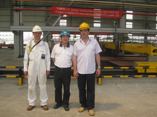 2009年6月1日上午十點(diǎn),韓通重工二期切割中心傳來陣陣鞭炮聲,我公司為德國船東建造的57000噸散貨輪(HT033)的開工儀式在此舉行。韓通重工代表陳興、船東代表 Vladimir Babic和LR代表Peter等人共同迎接了這激動人心的時(shí)刻。