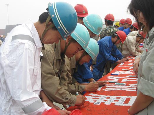 2009年6月4日上午7點(diǎn),江蘇韓通船舶重工有限公司24米主干道上人潮涌動(dòng)、橫幅飄展,一場(chǎng)韓通安全月萬(wàn)人大簽名活動(dòng)與安全事故教育圖片站在此展開(kāi)。市安委辦、安監(jiān)司、質(zhì)檢局、總工會(huì)、電視臺(tái)以及五接鎮(zhèn)司法所、安監(jiān)局、派出所等單位參與了此次活動(dòng)。通州市電視臺(tái)對(duì)此次活動(dòng)進(jìn)行了全程報(bào)道,本次活動(dòng)共用50余塊展板,展出圖片500余張,分發(fā)安全宣傳學(xué)習(xí)資料數(shù)千份。