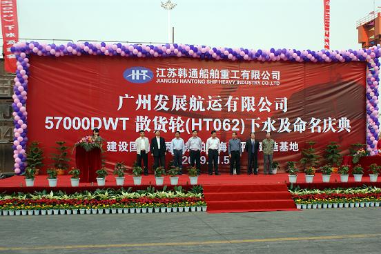 14:38,公司隆重舉行該船命名及下水儀式,船東廣州發(fā)展航運(yùn)代表、CCS船級社代表和公司領(lǐng)導(dǎo)出席儀式。
