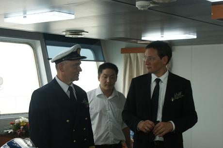 2010年8月17日,韓通船舶重工有限公司為PD公司建造的第十艘57000噸散貨輪(HT033)目前達(dá)到了交船狀態(tài),在韓通重工碼頭為該船舉行隆重的命名儀式。Peter Doehle公司Babic先生,HAMMONIA公司 Kasten Liebing先生,Kay Thuernagel先生,圣母Daisy Ye女士,,英國(guó)勞氏船級(jí)社中國(guó)中部地區(qū)商務(wù)經(jīng)理林立先生、江蘇韓通船舶重工有限公司常務(wù)副總陳林軍先生共同見證了這一激動(dòng)人心的時(shí)刻,并發(fā)表了精彩的演講。各位貴賓在陳興副總的陪同下登船參觀了這艘散貨輪,并在船上合影留念。