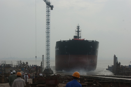 我司為DA SIN船東建造的57000噸散貨輪(船體號HT066)于2010年10月22日下午15:15在我司2號船臺舉行下水儀式,該船入LR,計劃于2011年初交船。陳林軍常務副總及船東船檢代表參加了該儀式。