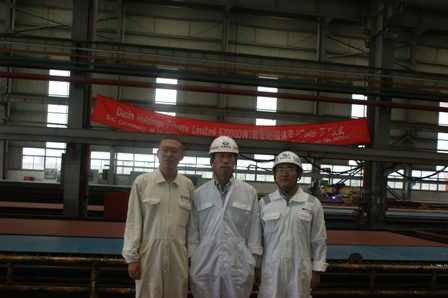 2010年10月23日上午09:30,我司為大新建造的57000噸散貨輪(船體號:HT045)在我司新船體車間舉行開工儀式,該船入BV船級社,計劃于2011年7月31日交船。李繼念副總、及船東,船級社代表參加了該儀式。