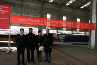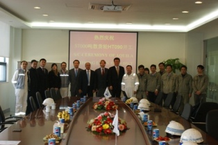2010年12月8日上午10:30,在我司新船體車間舉行57000噸散貨輪(船體號:HT090)開工儀式,本船為Aquila Shipping LLC 建造的系列船的首制船,該船入LR船級社,計劃于2011年10月31日交船。我司總經(jīng)理武亦文先生,副總經(jīng)理陳興先生及船東船檢代表參加了開工儀式。開工點火后,在韓通會議室簽署了開工文件。