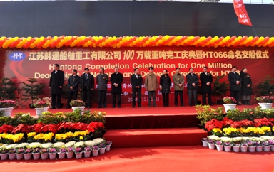 江蘇韓通船舶重工有限公司100萬載重噸完工慶典暨HT066命名及交船儀式