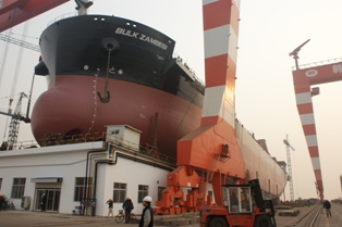 我司為意大利船東COECLERICI集團建造的55000噸自卸散貨船(船體號HT080)于2011年1月22日下午17:00在我司3#船臺舉行命名及下水儀式,該船入意大利船級社,被命名為“BULK ZAMBESI”,代理公司為蘇美達貿(mào)易公司。HT080為該項目系列船中的第1條,將于2011年交付船東。武亦文總經(jīng)理,陳林軍常務(wù)副總,陳興副總,船東代表及船級社代表參加該儀式。
