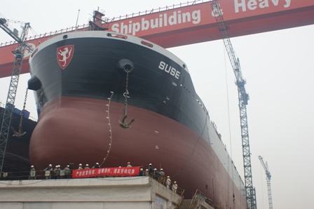 2011年3月19日下午3:10,我司為德國(guó)PD建造的57000DWT散貨輪(HT043)在韓通1號(hào)船臺(tái)成功下水。參加下水儀式的有常務(wù)副總陳林軍,副總陳興以及船東Babic。該船入LR船級(jí)社。