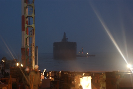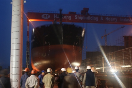 2011年4月6日早上5:00,我司為大新建造的57000DWT散貨輪(HT069)在韓通1號船臺成功下水,該船入BV船級社。陳林軍常務(wù)副總,李繼念副總,李泰然總助,船東代表及船級社代表參加該儀式。