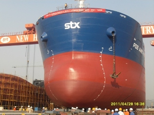 2011年4月28日我公司為德國(guó)CONTI船東建造第五艘的57000噸散貨輪(HT041)在新韓通船臺(tái)順利下水,該船入LR船級(jí)社。儀式結(jié)束后,四方代表共同簽署節(jié)點(diǎn)協(xié)議,并舉杯歡慶,合影留念。