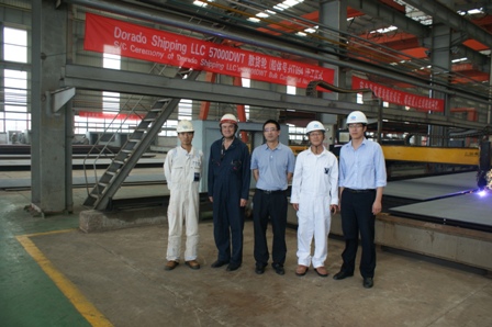 2011年6月17日,我司為Eagle Bulk 船東建造的57000噸散貨輪(船體號:HT094)開工儀式在韓通新船體車間順利舉行,該船入LR船級社。潘學(xué)軍副總及船東、船級社代表參加了該儀式。