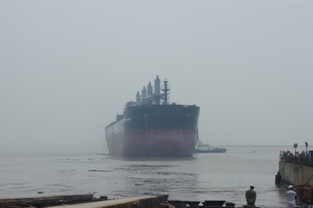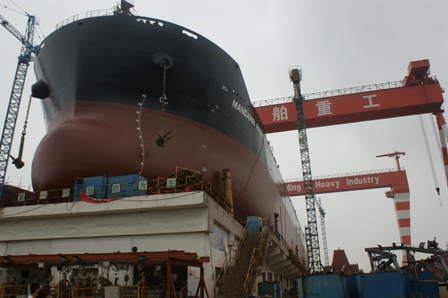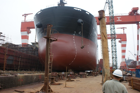 2011年7月31日, 我司為 DA SIN 建造的57000DWT散貨輪(HT045)在韓通1號船臺成功下水,該船入BV船級社。武亦文總經(jīng)理,陳興副總,李繼念副總,船東代表及船級社代表參加該儀式。