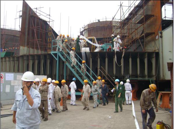 為了有效地應(yīng)對(duì)突發(fā)事件, 二零零七年八月三日, 韓通船舶重工組織了在建項(xiàng)目H021-Sevan 300 #4 FPSO 的緊急撤離及消防演習(xí), 與該項(xiàng)目有關(guān)的150人參與了演練。
