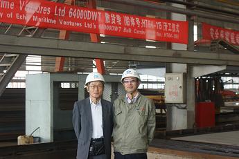 2011年10月10日,我司為 Loadline 船東建造的64000噸散貨輪(船體號:HT64-115)開工儀式在韓通新船體車間順利舉行,該船入NK船級社。潘學軍副總及船東、船級社代表參加了該儀式。