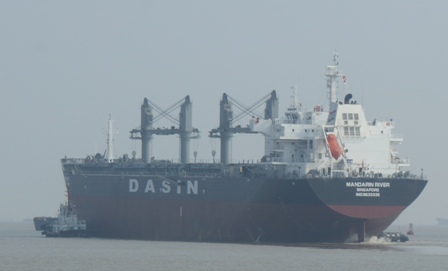 2011年10月12日,我司為大新船東建造的57000噸散貨輪(HT045)經(jīng)過為期3的試航試驗后,圓滿試航歸來,入BV船級社。此次試航順利完成各項交驗項目,并達(dá)到船東、船檢的要求,圓滿完成了該船的試航任務(wù)。