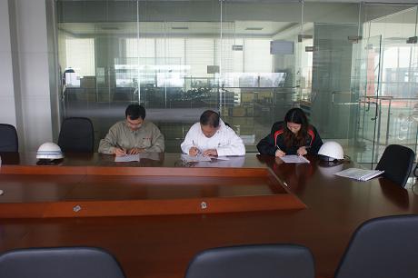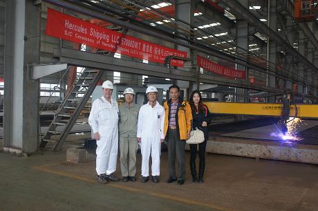 2011年10月14日上午10:30,我司為Eagle Bulk船東建造的57000噸散貨輪(船體號:HT095)開工儀式在韓通新船體車間順利舉行,該船入LR船級社。李繼念副總及船東、船級社代表參加了該儀式。開工點火后,三方在韓通會議室簽署了開工文件。