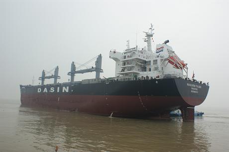 江蘇韓通船舶重工有限公司為大新船東建造的57000噸散貨輪(HT072)達(dá)到了交船狀態(tài),該船入ABS船級社。2011年9月26日,在文景國際大酒店司會議室潘學(xué)軍副總與船東代表簽訂了該船的交船文件。至此,該船成功交付。