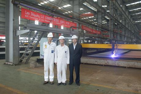 2011年10月24日上午10:00,我司為Eagle Bulk船東建造的57000噸散貨輪(船體號(hào):HT096)開工儀式在韓通新船體車間順利舉行,該船入LR船級社。潘學(xué)軍副總及船東、船級社代表參加了該儀式。開工點(diǎn)火后,三方在韓通會(huì)議室簽署了開工文件。