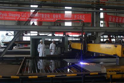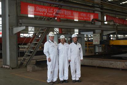 2011年11月15日,我司為Eagle Bulk船東建造的57000噸散貨輪(船體號:HT099)開工儀式在韓通新船體車間順利舉行,該船入LR船級社。李繼念副總及船東、船級社代表參加了該儀式。