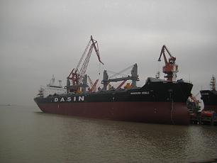 我司為DA SIN建造的57000噸散貨輪(HT030)達(dá)到了交船狀態(tài),2102年1月5日在糧油碼頭舉行了隆重的交船儀式。該船入BV船級(jí)社。儀式結(jié)束后,船東船檢代表等參觀了該船,并給予很高的評(píng)價(jià)。至此,該船成功交付。