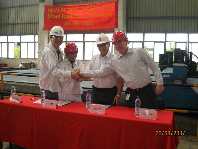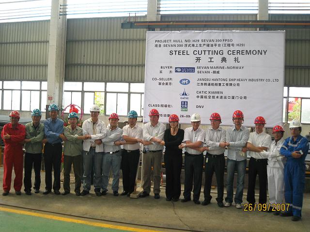 第二艘Sevan300 FPSO(H029)于2007年9月26日在韓通船舶重工順利開(kāi)工. 來(lái)自Sevan Marine, NDV, CATIC, OMO, HT的各方代表參加了點(diǎn)火慶典.