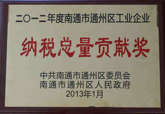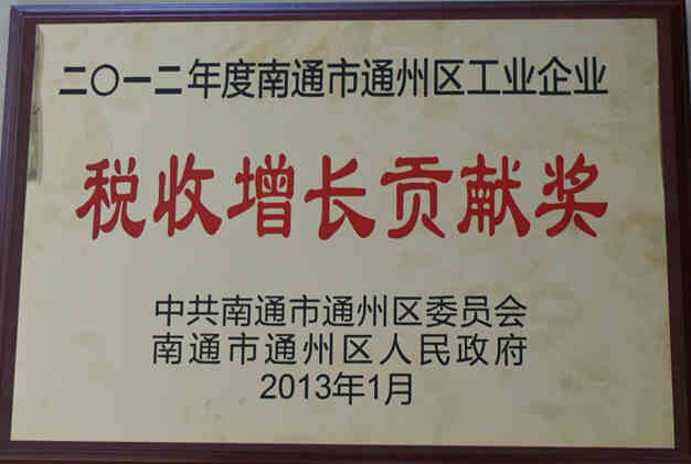 2013年1月31日,南通市通州區(qū)委、區(qū)政府組織召開(kāi)了2012年度通州區(qū)納稅百?gòu)?qiáng)企業(yè)表彰大會(huì)。我司榮獲工業(yè)企業(yè)納稅總量貢獻(xiàn)獎(jiǎng)及稅收增長(zhǎng)貢獻(xiàn)獎(jiǎng)。