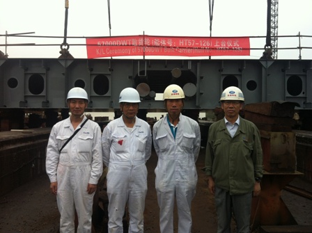 我司建造的57000DWT散貨輪(船體號:HT57-126)于2013年6月24日在我司1號船臺舉行了上臺儀式,該船入NK船級社。高振成副總經理及船東、船檢參加該儀式。
