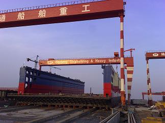 11月20日,為澄西船廠建造的17萬(wàn)噸浮船塢在韓通重工的1號(hào)船臺(tái)順利下水,此船塢是韓通重工1號(hào)船臺(tái)合攏的首制產(chǎn)品。