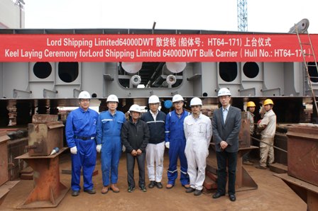 我司為船東lord公司建造的64000DWT散貨輪(船體號:HT64-171)于2014年3月31日在我司1號船臺舉行了上臺儀式,該船入NK船級社。高振成副總經(jīng)理及船東、船檢參加該儀式。
