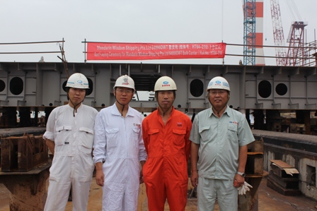 我司為大新船東建造的64000DWT散貨輪(船體號:HT64-210)于2014年8月18日在我司3號船臺舉行了上臺儀式,該船入BV船級社。周義慶副總經理及船東、船檢參加該儀式。