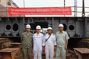 我司為FLEET船東建造的64000DWT散貨輪(船體號(hào):HT64-159)于2014年8月30日在我司1號(hào)船臺(tái)舉行了上臺(tái)儀式,該船入DNV.GL船級(jí)社。周義慶副總經(jīng)理及船東、船檢參加該儀式。