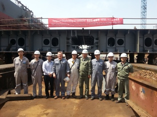 我司為CONTI建造的64000DWT散貨輪(船體號:HT64-157)于2015年5月5日在我司舉行了上臺儀式,該船入LR船級社。常務(wù)副總經(jīng)理周義慶、總經(jīng)理助理朱亮及船東、船檢參加該儀式。