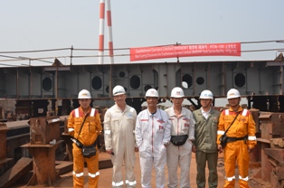 我司為德國船東PD 建造的38800DWT散貨輪(船體號:HT388-135)于2015年6月1日在我司1號船臺舉行了上臺儀式,該船入LR船級社??偨浝碇碇炝良按瑬|、船檢參加該儀式。