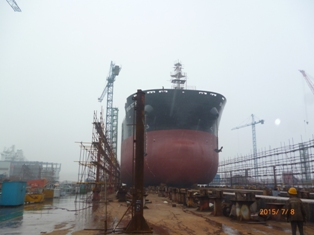 2015年7月8日,我司為挪威船東SPAR 建造的64000噸散貨輪(HT64-213)在韓通3號船臺成功下水,該船入DNV·