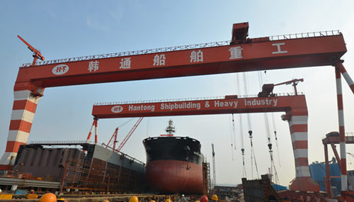 2015年8月1日,我司為船東CONTI 建造的64000噸散貨輪(HT64-157)在韓通1號(hào)船臺(tái)成功下水,該船入LR船級(jí)社。公司領(lǐng)導(dǎo)、船東代表及船級(jí)社代表參加該儀式。