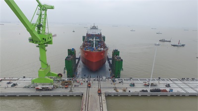 2016年1月6日 我司為香港金威航運建造的38K不銹鋼化學(xué)品船(船體號: (HT-CT38-001)成功舉行下水儀式, 本次下水采用液壓小車及半潛駁平臺下水方式。