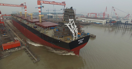 2016年4月9日,我司為挪威SPAR船東建造的64000噸散貨輪(HT64-215)成功下水,該船入DNV船級(jí)社。公司領(lǐng)導(dǎo)、船東代表及船級(jí)社代表參加該儀式。