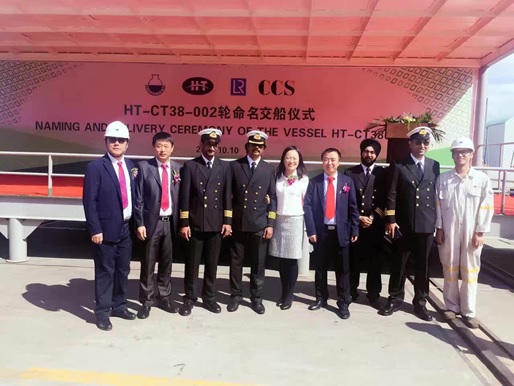 38800噸不銹鋼化學(xué)品船(HT-CT38-002)順利舉行命名&交船儀式