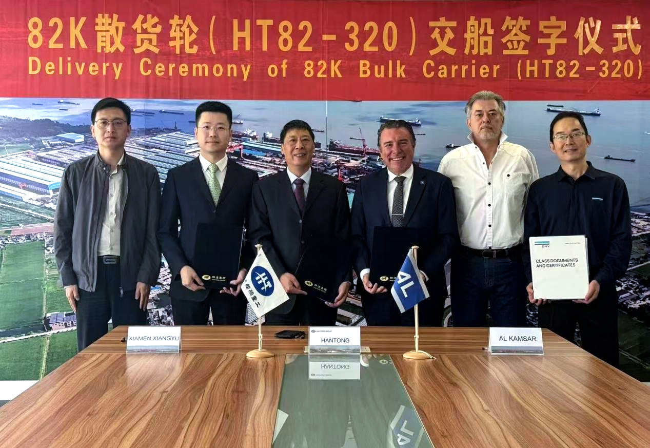 2025年5月20日,韓通洋溢著喜慶氛圍,隨著幾方代表在交船文件上鄭重簽字,我司為華宸船東建造的第九艘82000噸級散貨船(船體編號:HT82-298)“山東鑫祥”最終順利交付。這艘入級...